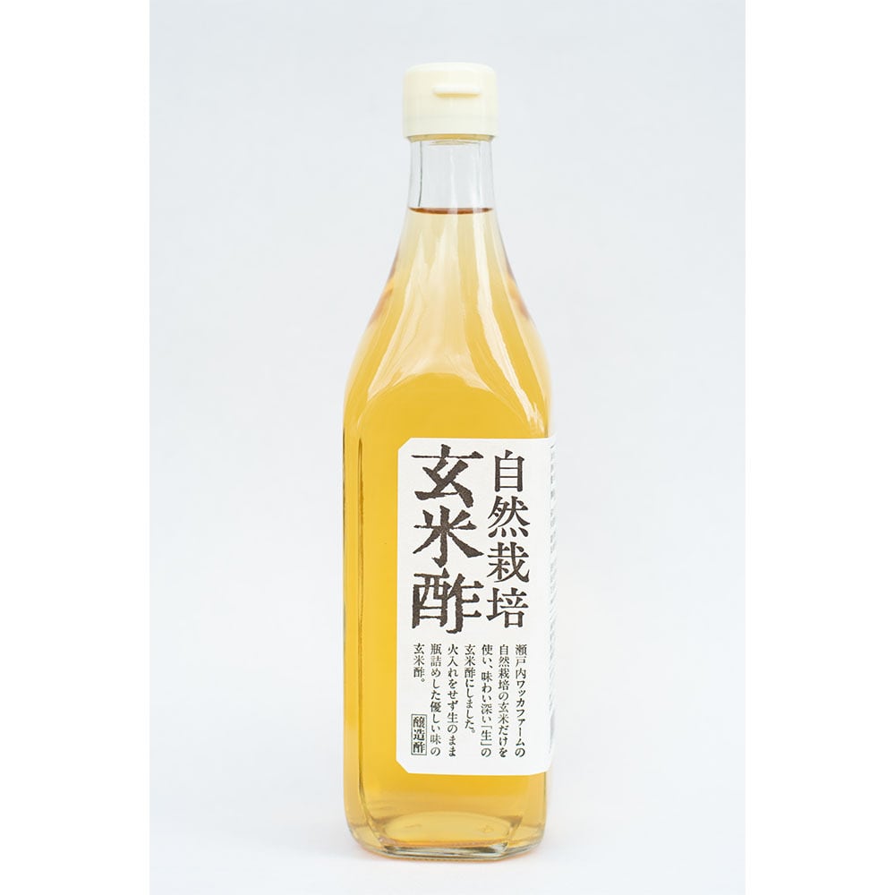 ワッカファームの自然栽培の玄米だけを使い、味わい深い「生」の玄米酢にしました。火入れをせず生のまま瓶詰めした優しい味の玄米酢。